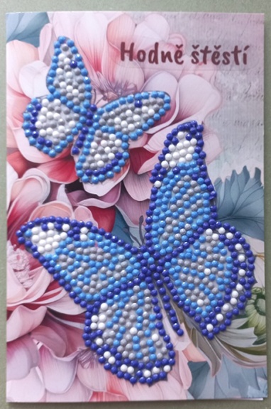 Přáníčko s motýlky ozdobené drobnými kamínky nám poslala Avad. Je nádherné, moc děkujeme.