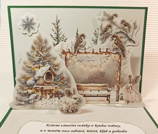 Nádherné vánoční přáníčko jsme dostali od milaask. Podívejte se i na druhou fotografii, na které je vidět čelní strana přáníčka před otevřením. Moc děkujeme.